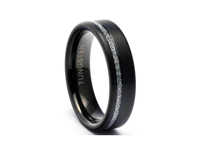 Black ceramic single offset inlay with Lunar Feldspar Breccia shavings with a white base 8 mm for Amy