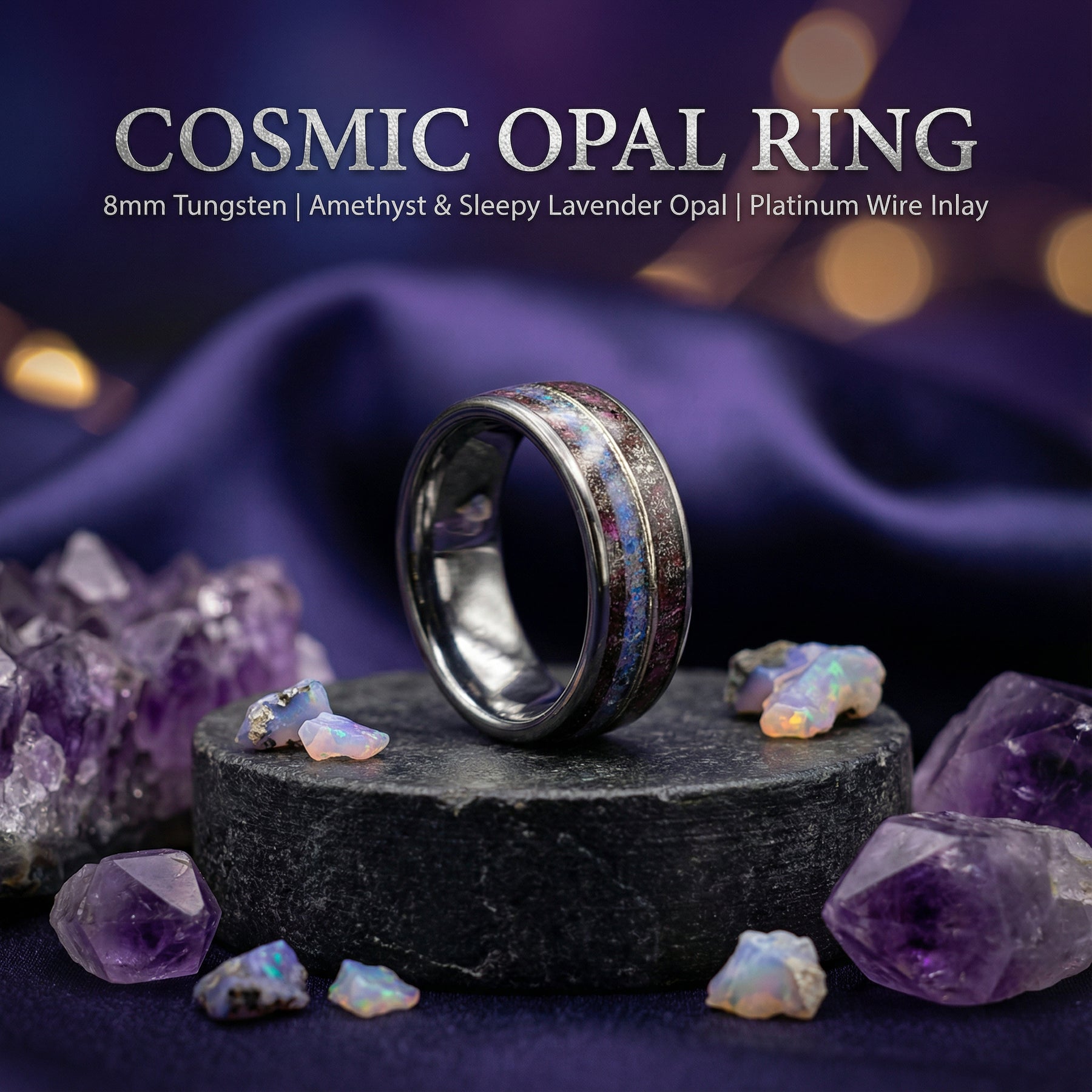 Amethyst Meteorite Lavender Opal Tungsten Ring
