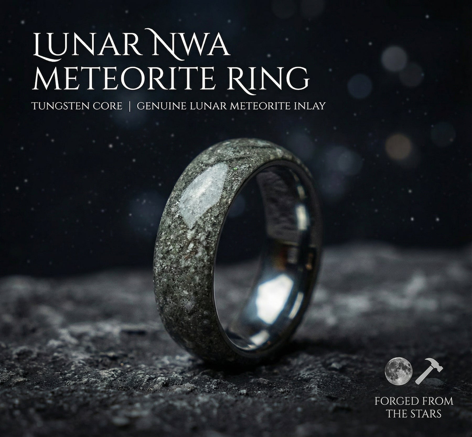 Lunar Meteorite Domed Tungsten Ring
