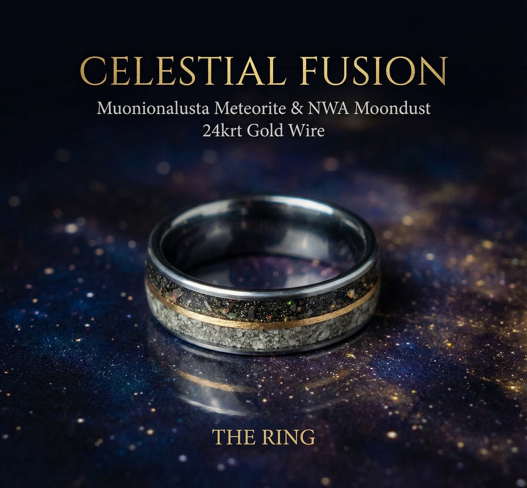 Inlay: Genuine NWA Lunar moon dust and Meteorite dust mixed with opal,  divided with an 18K Gold wire