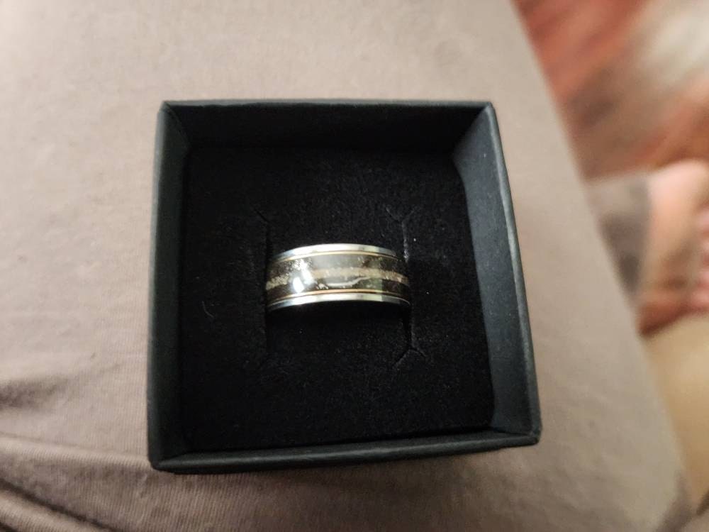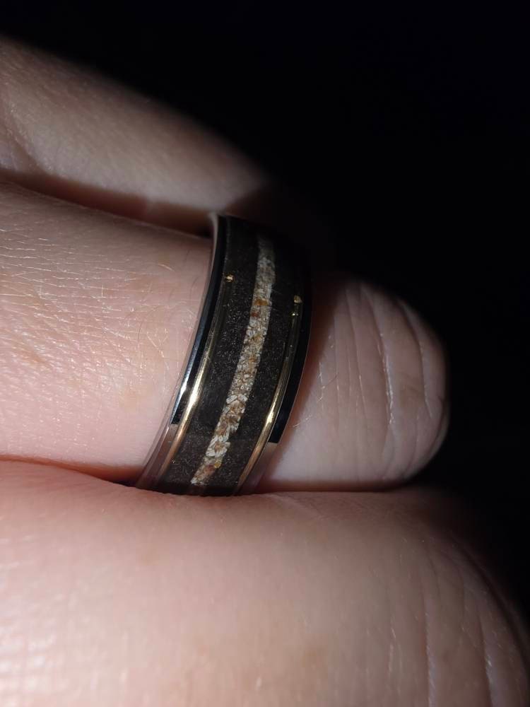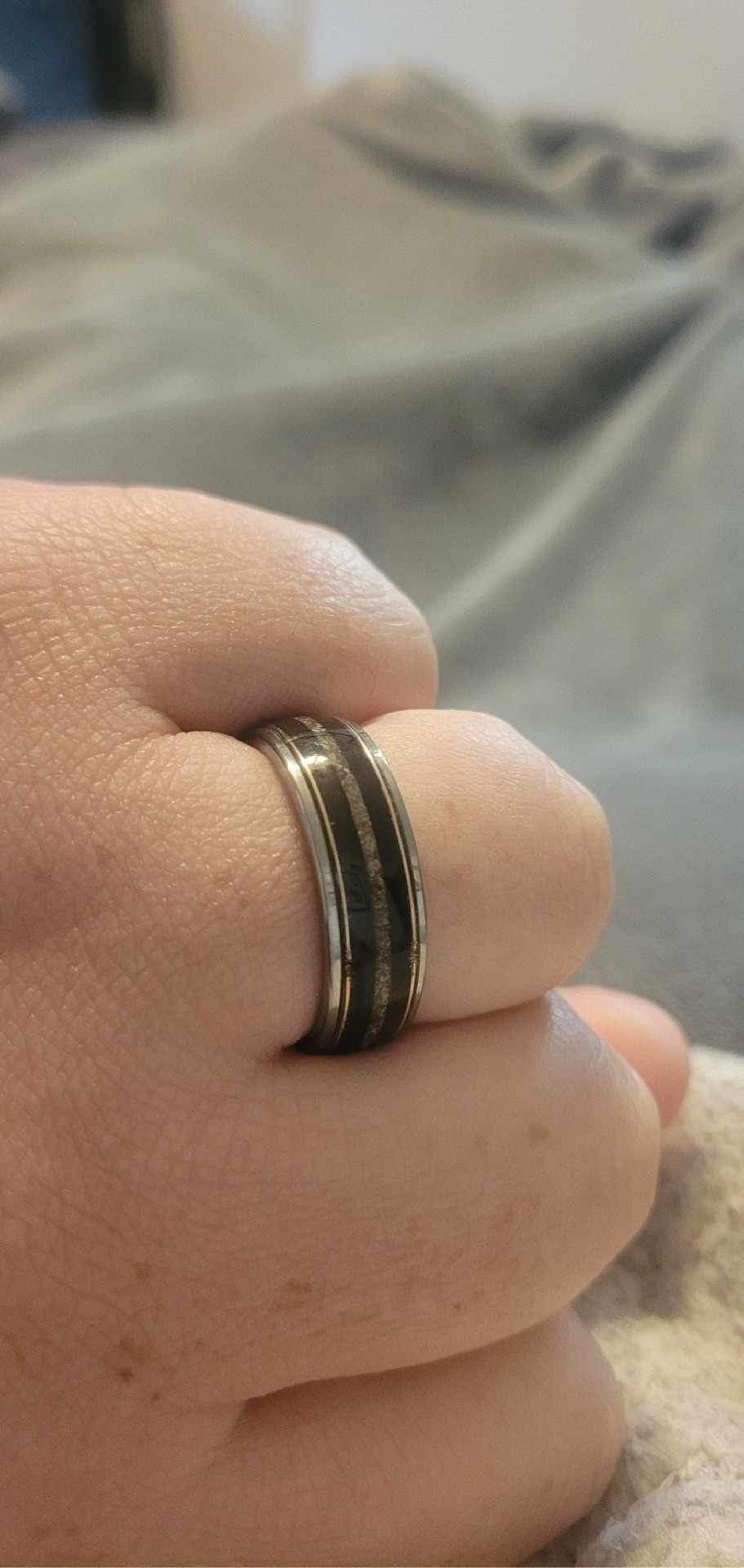 Megalodon Dinosaur bone ring, handmade jewelry, meteorite rings, dinosaur meteorite ring, tungsten wedding band, mens wedding band  | Decazi